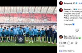 12月31日讯 今日,韩国后卫朴志洙更新社媒,向武汉三镇告别。朴志洙在社媒晒出此前领取百场纪念球衣的...