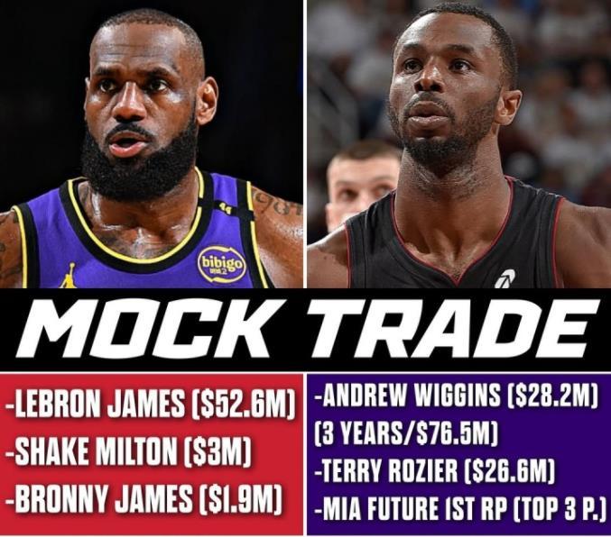 交易的具体内容是:湖人送出:詹姆斯父子+米尔顿;得到热火的:维金斯+罗齐尔+未来1首轮(前三保护)!