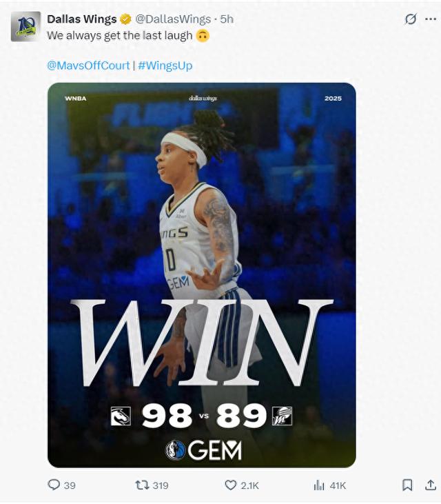 北京时间7月4日,WNBA常规赛,达拉斯飞翼98-89菲尼克斯水星。这场比赛飞翼打得非常流畅,首节就轰下32分领先12分,半场拉开到18分,第三节水星才苏醒追回7分,末节飞翼牢牢掌控全局。